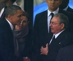 El presidente de Estados Unidos, Barack Obama, estrechó la mano al presidente de Cuba, Raúl Castro, en lo que se ha convertido en una imagen histórica producida en el memorial a Nelson Mandela, celebrado este martes en Johannesburgo, afirma EFE. Raúl sonrió mientras Obama le daba la mano mientras se dirigía al estrado del estadio Soccer City, en un gesto sin precedentes, añade la agencia.